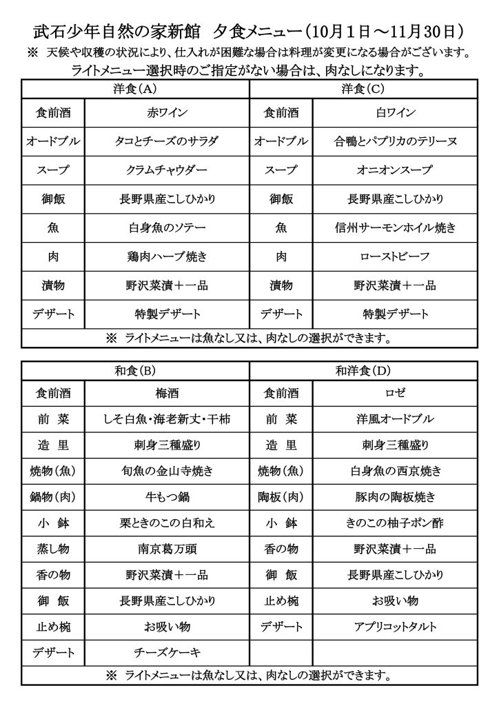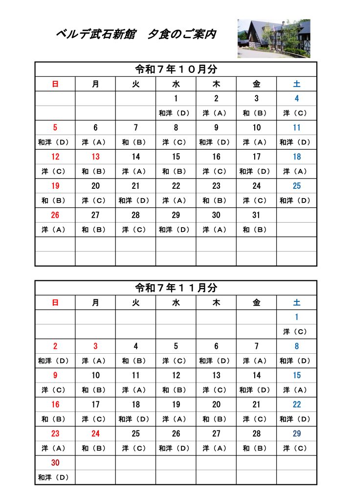 令和7年10月~令和7年11月 夕食カレンダー メニュー